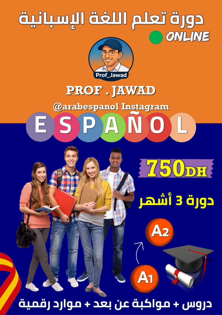 تعرّف على تجربة مميّزة في تعلّم اللغة الإسبانية أون لاين 🌍 حصص حصرية وممتعة مع الأستاذ جواد، بأسلوب تفاعلي ونتائج ملموسة ✨